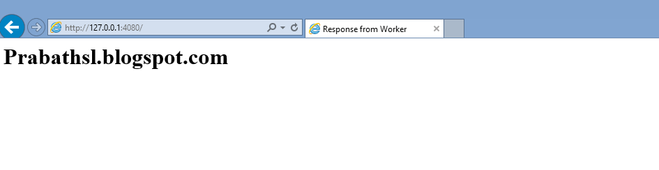 public override void Run() { HttpListener listner = new HttpListener(); //This will ping to Http://myserviceurl:4488 port listner.Prefixes.Add("http://+:4488/"); listner.Start(); //Set the response to transformable format string responseMessage = "<html><title>Response from Worker</title><body><h1>Prabathsl.blogspot.com</h1></body></html>"; byte[] buffer = Encoding.UTF8.GetBytes(responseMessage); while (true) { HttpListenerContext context = listner.GetContext(); //then set the response HttpListenerResponse response = context.Response; response.ContentLength64 = buffer.Length; Stream output = response.OutputStream; //write output stream output.WriteAsync(buffer, 0, buffer.Length); output.Close(); } }This is local for the Azure VM.